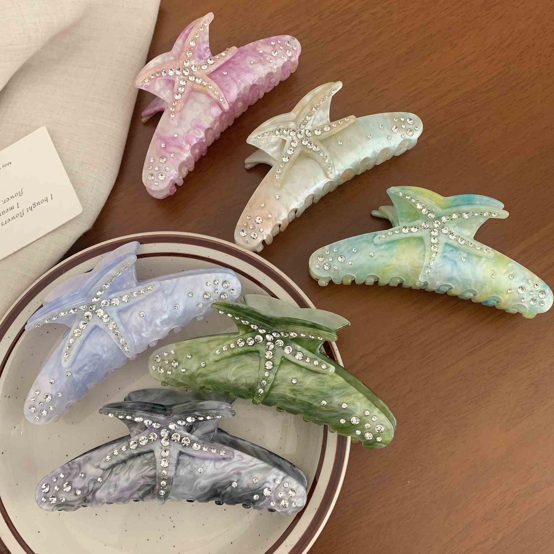 Factory Wholesale Fashion Acetate Star Hair Claw 11.5 CM Summer Starfish Hair Clip for Women Girls Thick Hair